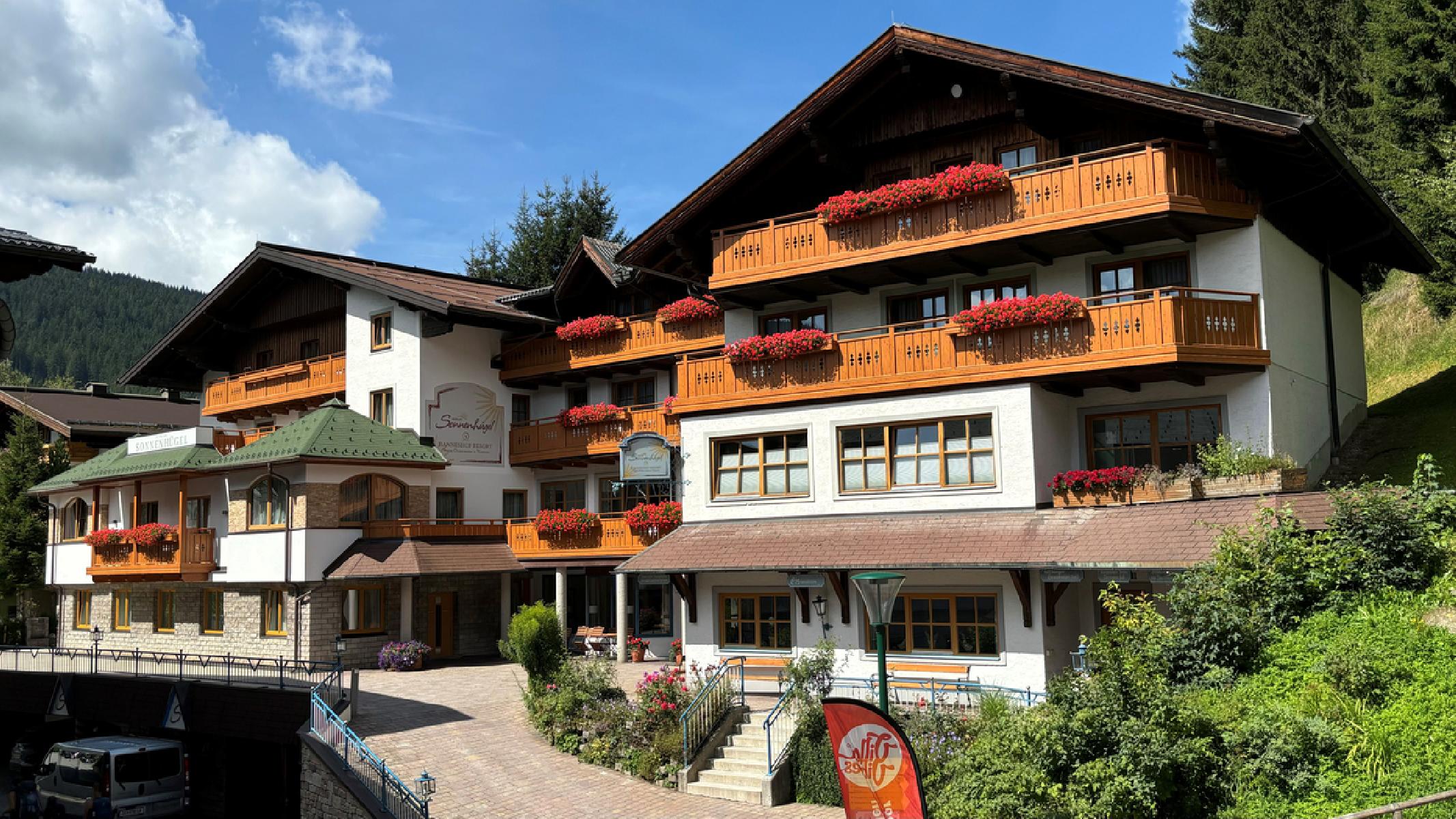Deine Unterkunft besteht aus den Haupthäusern "Hanneshof" mit 4 Sternen und "Hotel Sonnenhügel" mit 4 Sternen (Haupthäuser ca. 110 m voneinander entfernt) und mehreren Nebenhäusern (alle nicht kategorisiert) und alle Gebäude befinden sich im Umkreis von ca. 500 m. Alle Leistungen werden in den Haupthäusern erbracht, auch für Gäste der Nebenhäuser. Das freundliche Hautgebäude bietet Dir eine Empfangshalle mit Sitzgelegenheiten, eine Rezeption, einen Aufenthaltsraum und einen Innenpool sowie einen schönen Wellnessbereich u.a. mit Sauna, finnischer Sauna und Dampfbad. Für Dein leibliches Wohl steht Dir ein Restaurant, ein Frühstücksraum, ein à-la-carte-Restaurant und eine Hotelbar sowie ein Stüberl zur Verfügung. Das Rauchen ist nur in ausgewiesenen Bereichen gestattet.